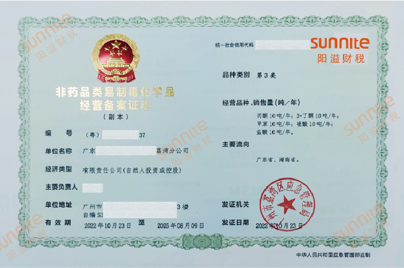 非藥品類(lèi)易制毒化學(xué)品經(jīng)營(yíng)許可證